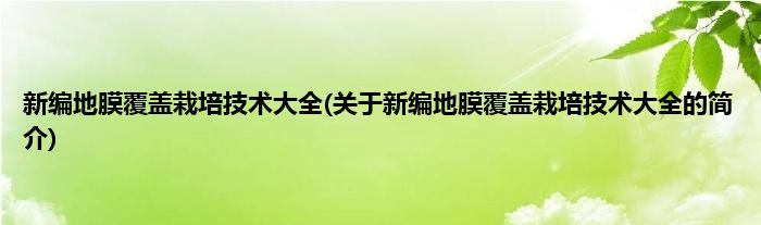 本文关于新编地膜覆盖栽培技术大全的简介就讲解完毕,希望对大家有所帮助。