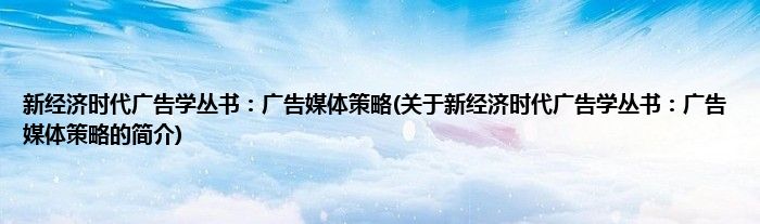 本文关于新经济时代广告学丛书:广告媒体策略的简介就讲解完毕,希望对大家有所帮助。