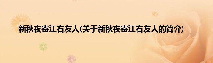 本文关于新秋夜寄江右友人的简介就讲解完毕,希望对大家有所帮助。