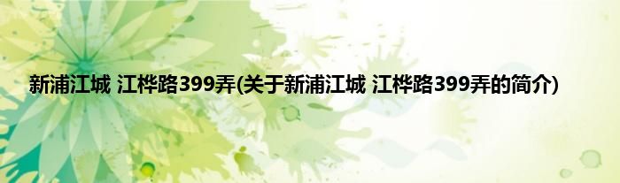 本文关于新浦江城 江桦路399弄的简介就讲解完毕,希望对大家有所帮助。