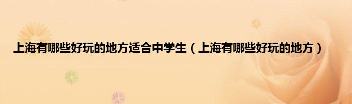 大家好,精选小编来为大家解答以上问题。上海有哪些好玩的地方适合中学生,上海有哪些好玩的地方很多人还不知道,现在让我们一起来看看吧!