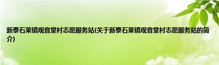 本文关于新泰石莱镇观音堂村志愿服务站的简介就讲解完毕,希望对大家有所帮助。