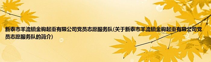 1、 新泰市羊流镇金驹起重有限公司党员志愿服务队是由新泰市党员志愿服务总队领导下的志愿团体。