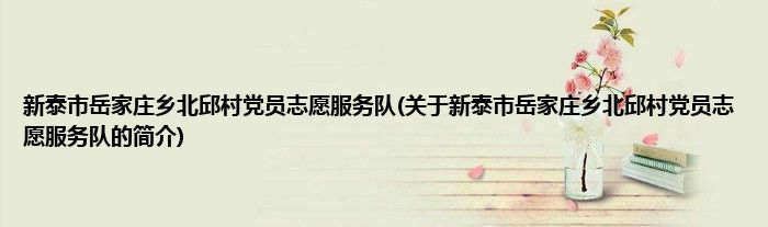 新泰市岳家庄乡北邱村党员志愿服务队(关于新泰市岳家庄乡北邱村党员志愿服务队的简介)