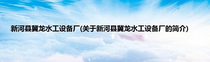1、 新河县冀龙水工设备厂是一家设计、制造、批量生产及指导安水工机械的综合性企业。
