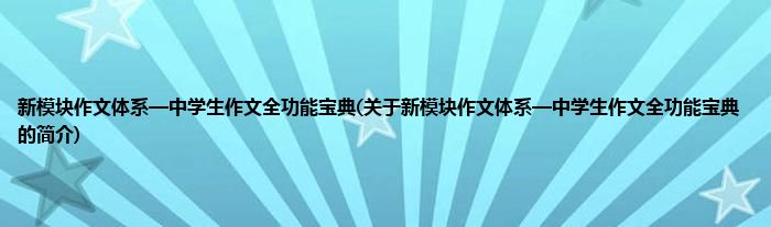 本文关于新模块作文体系—中学生作文全功能宝典的简介就讲解完毕,希望对大家有所帮助。