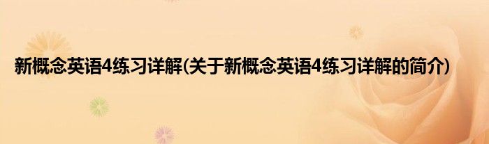 大家好,新概念英语4练习详解,关于新概念英语4练习详解的简介很多人还不知道,现在让我们一起来看看吧!