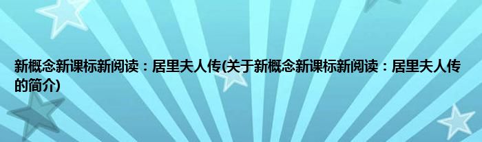 本文关于新概念新课标新阅读:居里夫人传的简介就讲解完毕,希望对大家有所帮助。