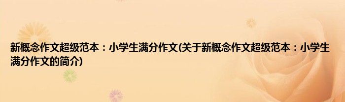 本文关于新概念作文超级范本:小学生满分作文的简介就讲解完毕,希望对大家有所帮助。