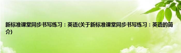 本文关于新标准课堂同步书写练习:英语的简介就讲解完毕,希望对大家有所帮助。
