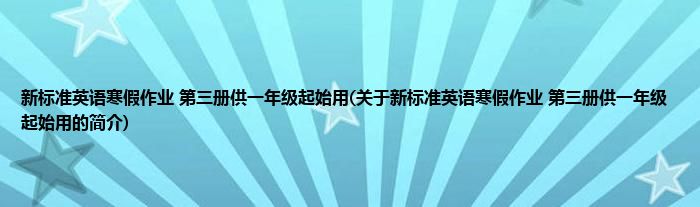 本文关于新标准英语寒假作业 第三册供一年级起始用的简介就讲解完毕,希望对大家有所帮助。