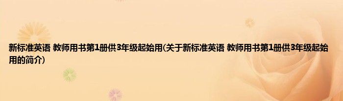 本文关于新标准英语 教师用书第1册供3年级起始用的简介就讲解完毕,希望对大家有所帮助。