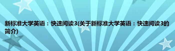 大家好,新标准大学英语:快速阅读3,关于新标准大学英语:快速阅读3的简介很多人还不知道,现在让我们一起来看看吧!