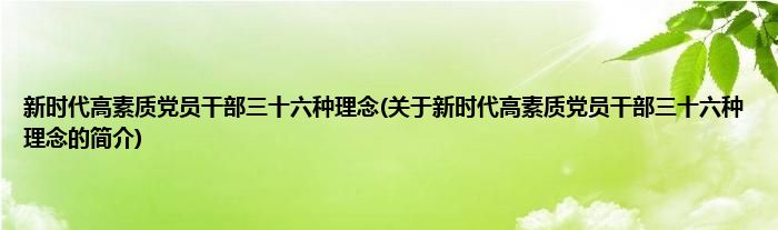 本文关于新时代高素质党员干部三十六种理念的简介就讲解完毕,希望对大家有所帮助。