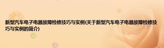 本文关于新型汽车电子电器故障检修技巧与实例的简介就讲解完毕,希望对大家有所帮助。