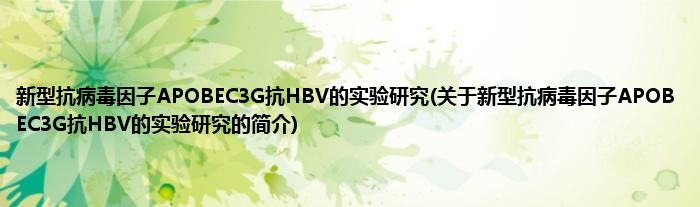 大家好,新型抗病毒因子APOBEC3G抗HBV的实验研究,关于新型抗病毒因子APOBEC3G抗HBV的实验研究的简介很多人还不知道,现在让我们一起来看看吧!