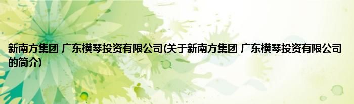 本文关于新南方集团 广东横琴投资有限公司的简介就讲解完毕,希望对大家有所帮助。