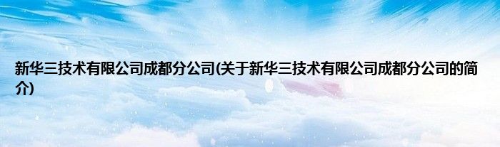大家好,新华三技术有限公司成都分公司,关于新华三技术有限公司成都分公司的简介很多人还不知道,现在让我们一起来看看吧!