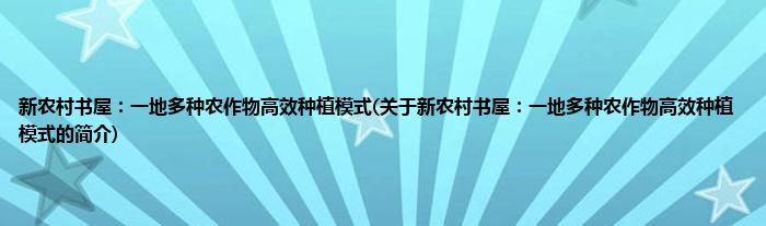 本文关于新农村书屋:一地多种农作物高效种植模式的简介就讲解完毕,希望对大家有所帮助。