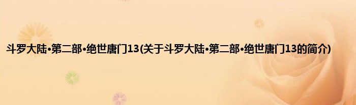 本文关于斗罗大陆·第二部·绝世唐门13的简介就讲解完毕,希望对大家有所帮助。