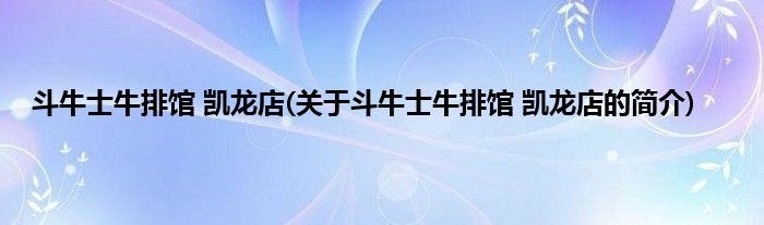 大家好,斗牛士牛排馆 凯龙店,关于斗牛士牛排馆 凯龙店的简介很多人还不知道,现在让我们一起来看看吧!