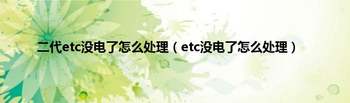 大家好,精选小编来为大家解答以上问题。二代etc没电了怎么处理,etc没电了怎么处理很多人还不知道,现在让我们一起来看看吧!