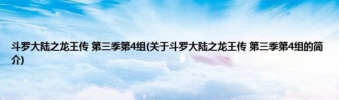 本文关于斗罗大陆之龙王传 第三季第4组的简介就讲解完毕,希望对大家有所帮助。