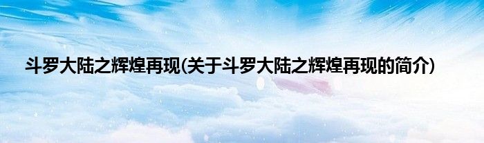本文关于斗罗大陆之辉煌再现的简介就讲解完毕,希望对大家有所帮助。