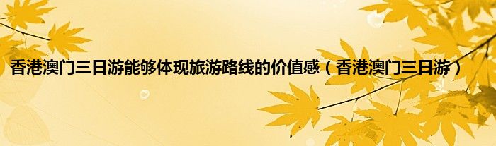大家好,精选小编来为大家解答以上问题。香港澳门三日游能够体现旅游路线的价值感,香港澳门三日游很多人还不知道,现在让我们一起来看看吧!