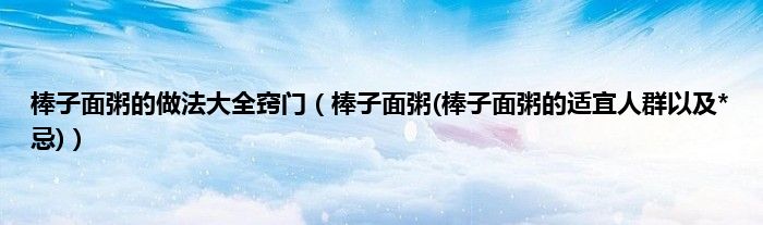 大家好,小科来为大家解答以上问题。棒子面粥的做法大全窍门,棒子面粥(棒子面粥的适宜人群以及*忌)很多人还不知道,现在让我们一起来看看吧!