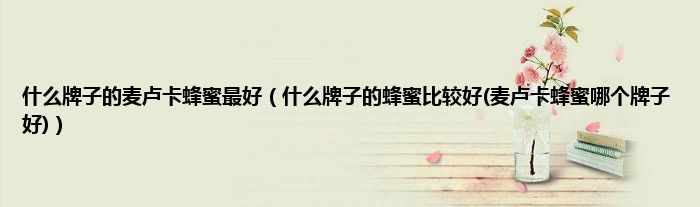 大家好,小科来为大家解答以上问题。什么牌子的麦卢卡蜂蜜最好,什么牌子的蜂蜜比较好(麦卢卡蜂蜜哪个牌子好)很多人还不知道,现在让我们一起来看看吧!