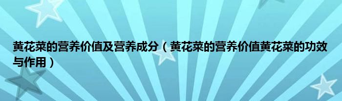 黄花菜的营养价值非常高。富含花粉、糖、蛋白质、钙、脂肪、胡萝卜素、氨基酸等人体必需的营养物质,以及丰富的膳食纤维、维生素和矿物质。黄花菜干的蛋白质、脂肪、碳水化合物含量比西红柿、大白菜高10倍。碳水化合物含量和热量含量和大米差不多。黄花菜的维生素含量比白菜高10倍,矿物质含量比白菜高3倍以上。