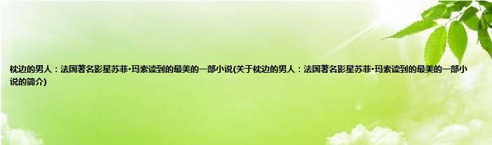 本文关于枕边的男人:法国著名影星苏菲·玛索读到的最美的一部小说的简介就讲解完毕,希望对大家有所帮助。