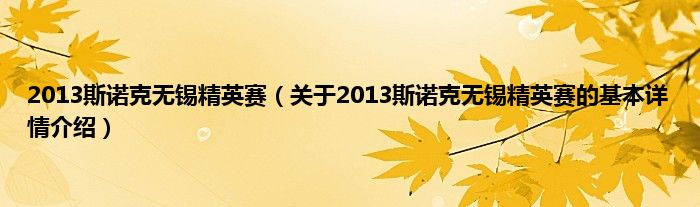 本文关于2013斯诺克无锡精英赛的基本详情介绍就讲解完毕,希望对大家有所帮助。