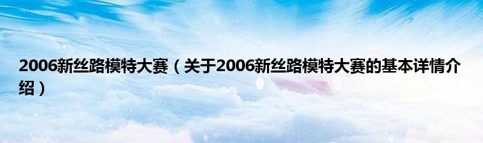 本文关于2006新丝路模特大赛的基本详情介绍就讲解完毕,希望对大家有所帮助。