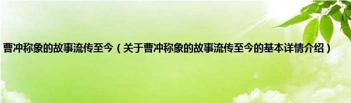 本文关于曹冲称象的故事流传至今的基本详情介绍就讲解完毕,希望对大家有所帮助。