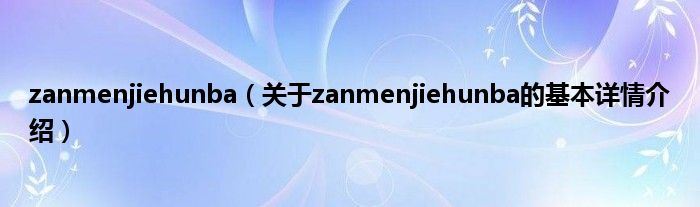 本文关于zanmenjiehunba的基本详情介绍就讲解完毕,希望对大家有所帮助。
