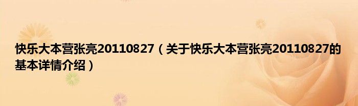 本文关于快乐大本营张亮20110827的基本详情介绍就讲解完毕,希望对大家有所帮助。