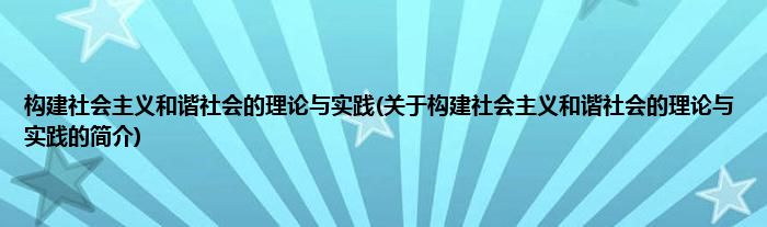 本文关于构建社会主义和谐社会的理论与实践的简介就讲解完毕,希望对大家有所帮助。