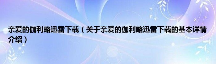 本文关于亲爱的伽利略迅雷下载的基本详情介绍就讲解完毕,希望对大家有所帮助。