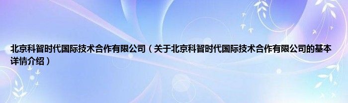 本文关于北京科智时代国际技术合作有限公司的基本详情介绍就讲解完毕,希望对大家有所帮助。