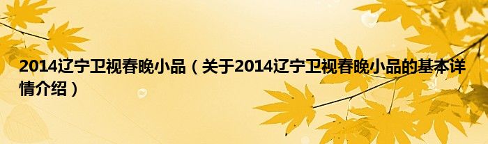 本文关于2014辽宁卫视春晚小品的基本详情介绍就讲解完毕,希望对大家有所帮助。