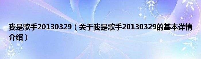 本文关于我是歌手20130329的基本详情介绍就讲解完毕,希望对大家有所帮助。