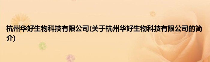 本文关于杭州华好生物科技有限公司的简介就讲解完毕,希望对大家有所帮助。