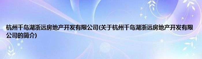 本文关于杭州千岛湖浙远房地产开发有限公司的简介就讲解完毕,希望对大家有所帮助。