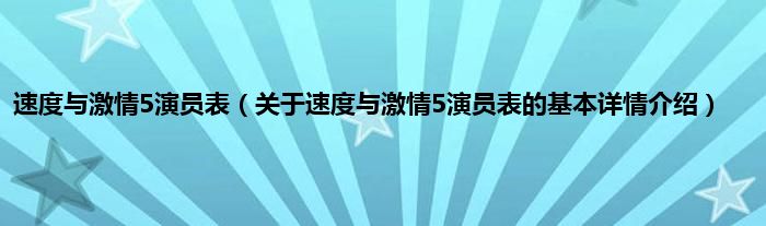本文关于速度与激情5演员表的基本详情介绍就讲解完毕,希望对大家有所帮助。