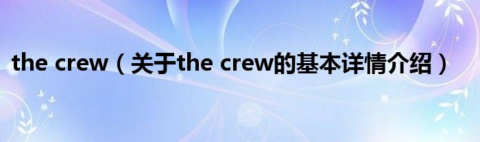 本文关于the crew的基本详情介绍就讲解完毕,希望对大家有所帮助。