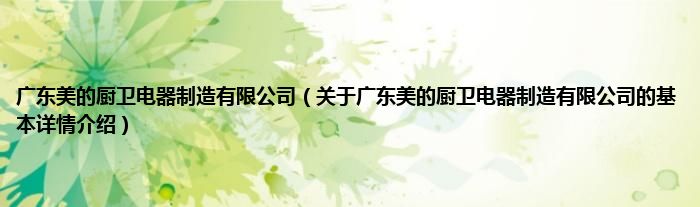 本文关于广东美的厨卫电器制造有限公司的基本详情介绍就讲解完毕,希望对大家有所帮助。