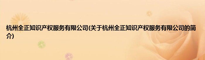 本文关于杭州全正知识产权服务有限公司的简介就讲解完毕,希望对大家有所帮助。