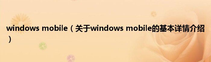 本文关于windows mobile的基本详情介绍就讲解完毕,希望对大家有所帮助。
